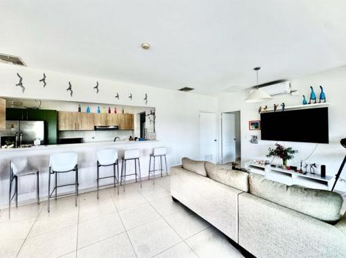 The property features 2 spacious bedrooms, 2 modern bathrooms, and an open-concept kitchen that seamlessly connects to the living and dining area, creating the perfect environment for family gatherings and entertaining friends. Step outside onto the large terrace, where you’ll be greeted by panoramic views of the golf course and the refreshing ocean breeze that makes every morning feel like a getaway.